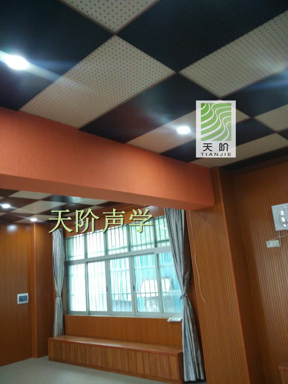 天階聲學孔木吸音板采用優質的中纖板、具有環保、防火、防水等性能,飾面顏色及材料選擇性廣,能很好地滿足客戶多樣化的聲學及裝飾需求。較槽木吸音板,孔木吸音板相對抗撞擊能力強。