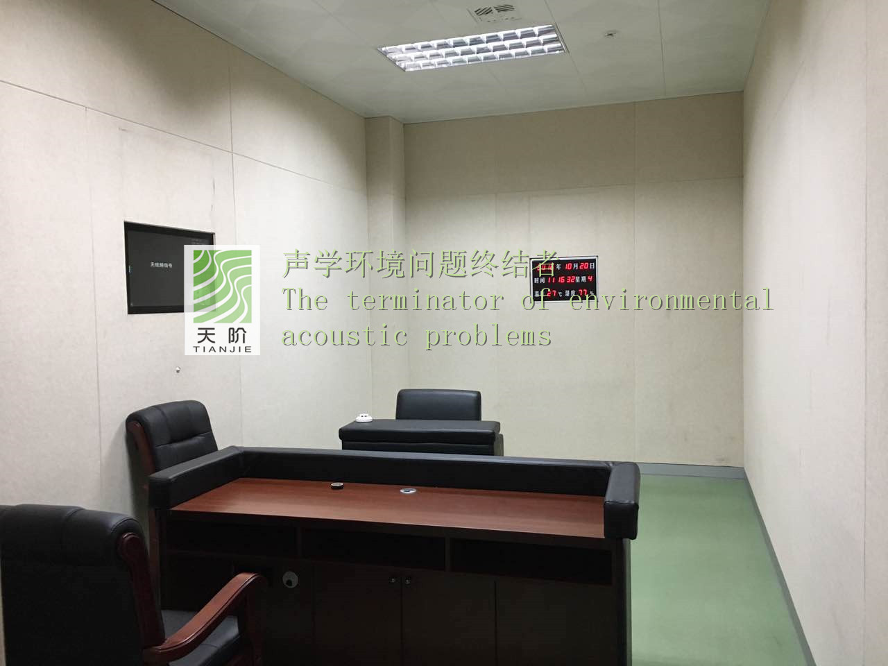 聚酯纖維吸音板具有高密度、環(huán)保、防火、吸聲頻帶寬、裝飾性強(qiáng)、施工簡(jiǎn)單、易于切割、無(wú)粉塵污染等性能,飾面顏色及材料選擇性廣、能很好地滿足客戶多樣化的聲學(xué)及裝飾需求。此次惠州公安局采用天階牌聚酯纖維吸音板作為審訊室的減噪處理。