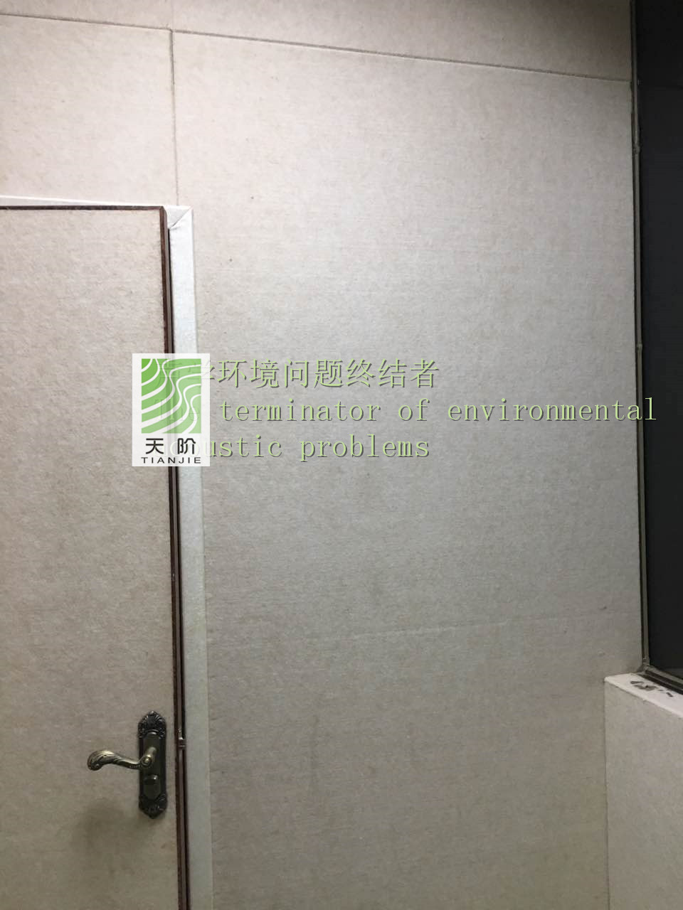 此審訊室四周都裝有聚酯纖維吸音板。為了有個(gè)更好的審訊環(huán)境,甲方要求把門也裝上了聚酯纖維吸音板。