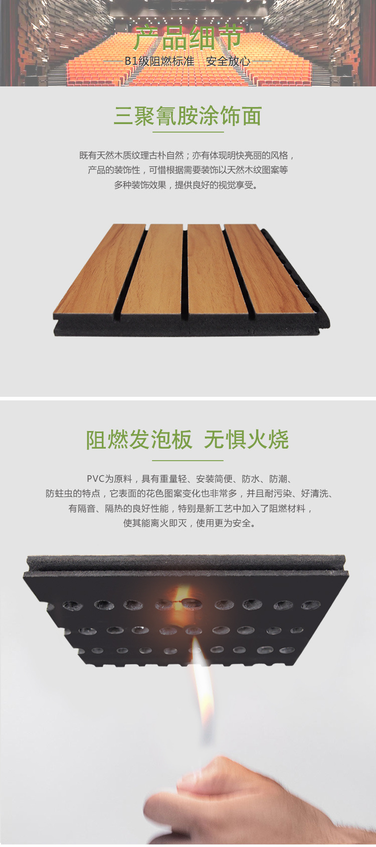 PVC黑色條形槽木隔音吸音板規(guī)格、厚度、基材和飾面選擇很多,詳情致電天階聲學(xué),可免費(fèi)索取拿樣板:13570905365