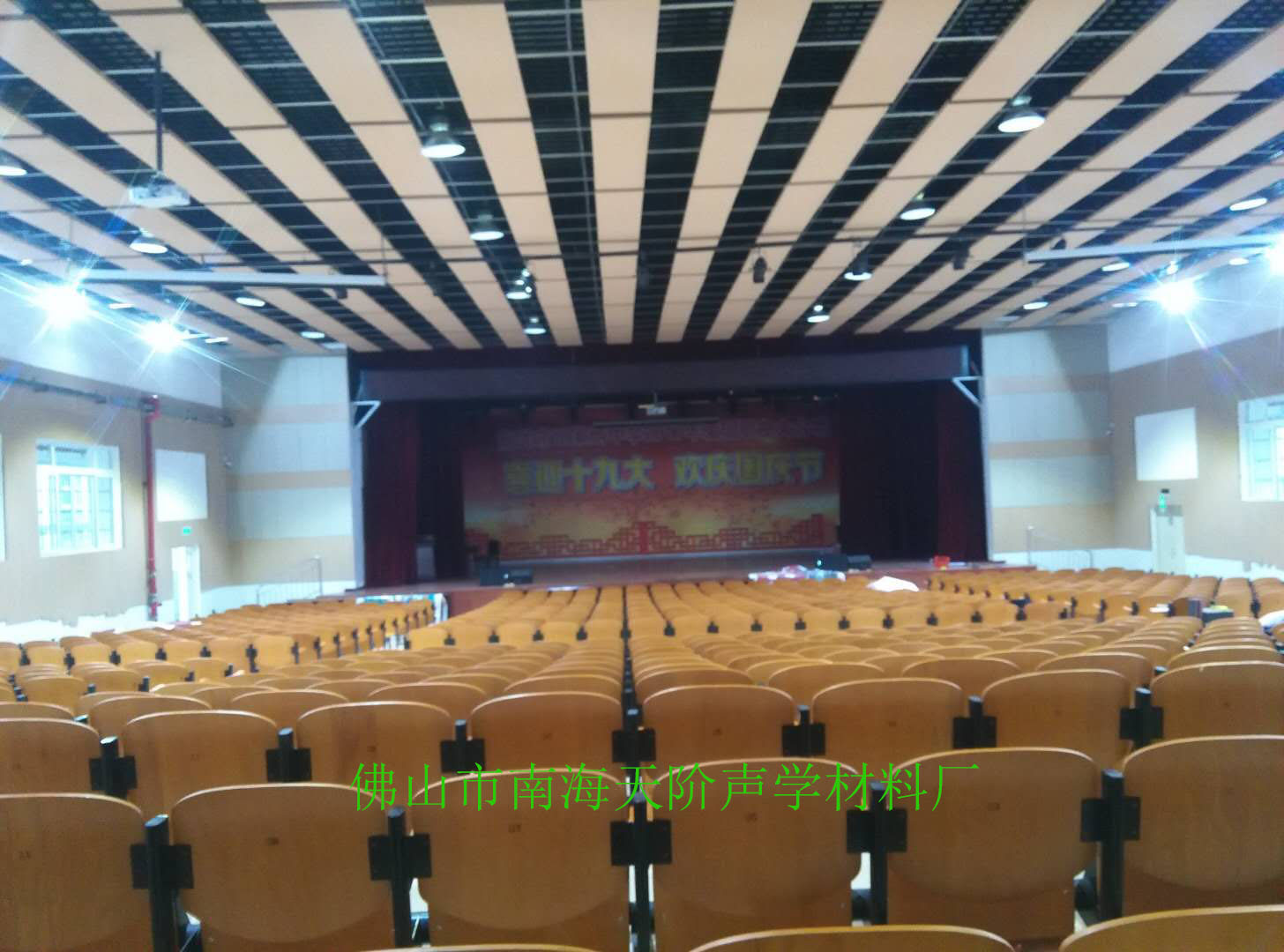 韶關田家炳中學禮堂,使用了天階牌槽木吸音板1000平方。