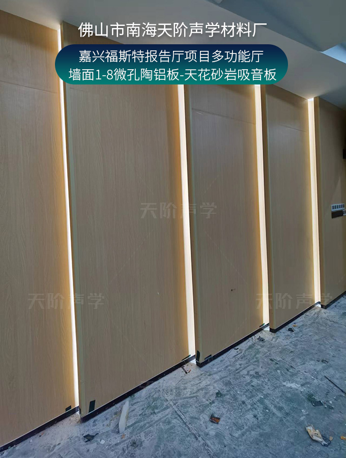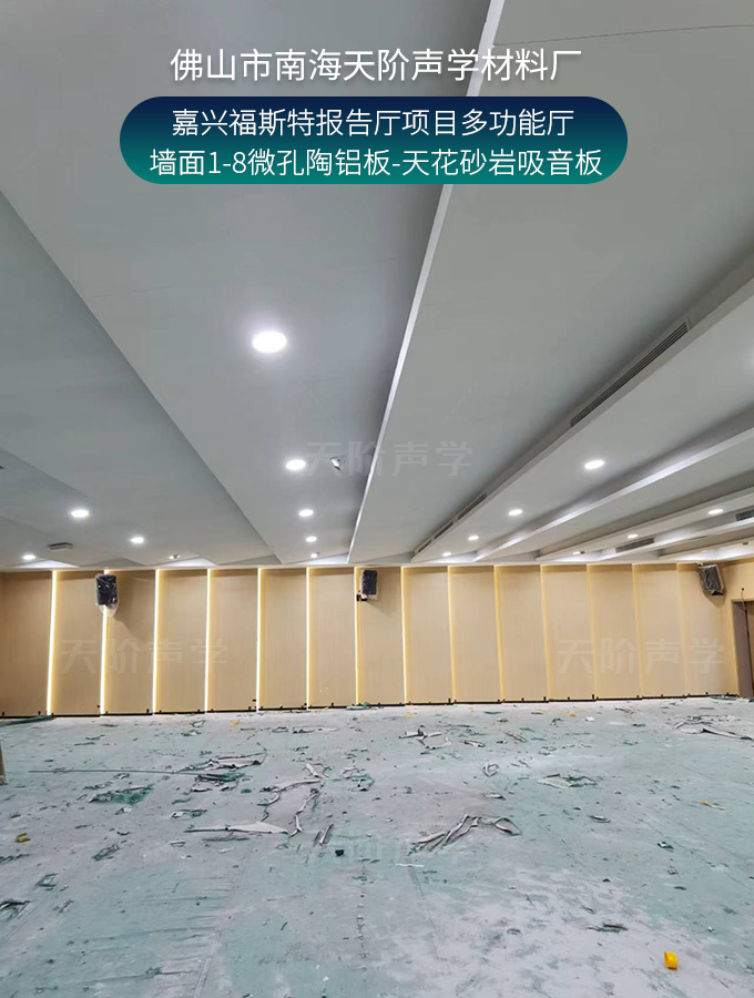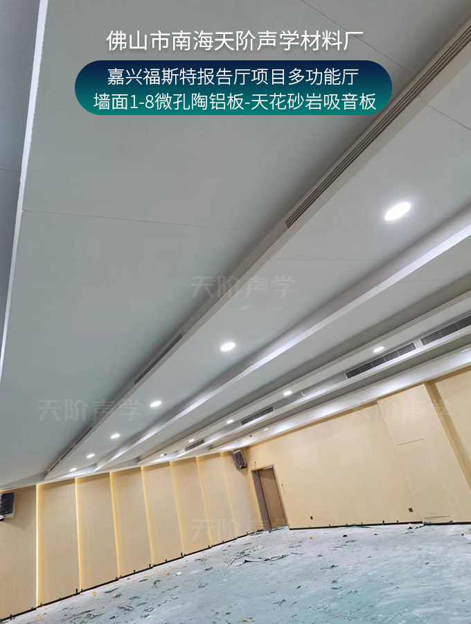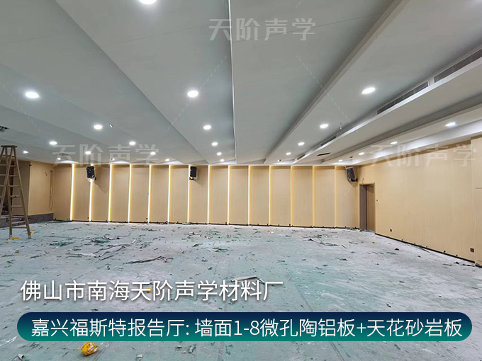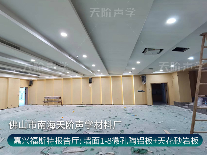 嘉興福斯特報告廳項目多功能廳-墻面1-8微孔陶鋁板-天花砂巖吸音板