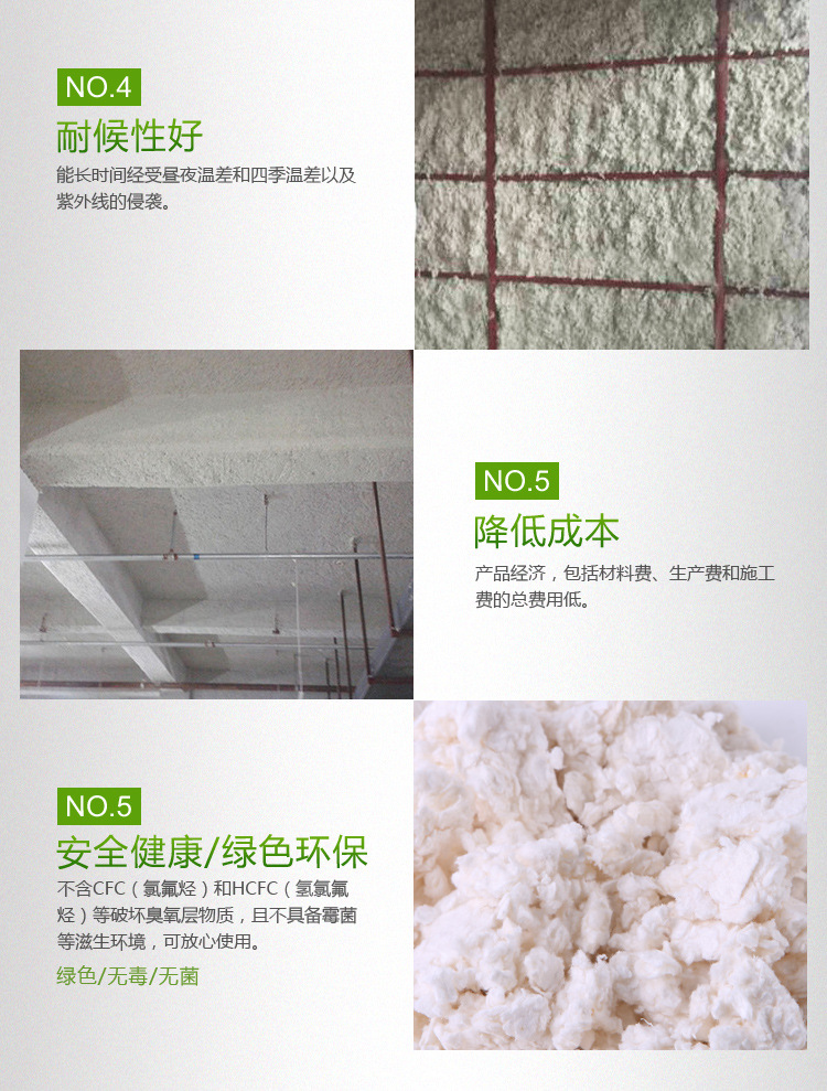 采用美國進(jìn)口專用設(shè)備及專用膠水,可不規(guī)則地噴注在物體表面上。如:木材、金屬、混凝土及其它建筑材料,厚薄容重可按具體要求設(shè)計。噴涂后形成整體無縫的隔封面,無需裁隔外觀簡潔。噴涂緊附在各類物體上,長期使用不會松脫。