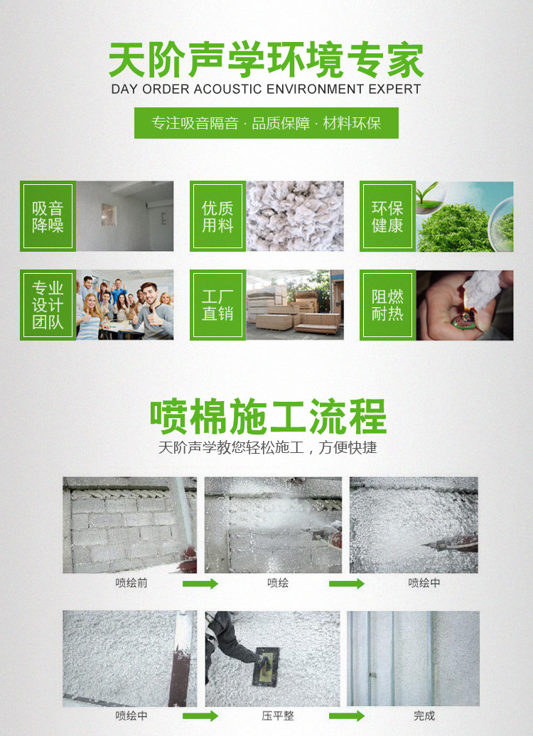 無機(jī)纖維噴涂棉,無機(jī)纖維隔熱保溫噴涂具有良好的吸聲性能的吸音材料,根據(jù)清華大學(xué)建筑物理環(huán)境檢測中心檢測結(jié)果,2CM厚無機(jī)纖維素的降噪系數(shù)NRC達(dá)到0.75,即2CM厚無機(jī)纖維素噴涂在頂棚上可以吸收75%的入射聲音,將會大大降低室內(nèi)噪聲,起到改善環(huán)境的作用。