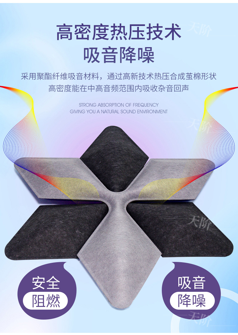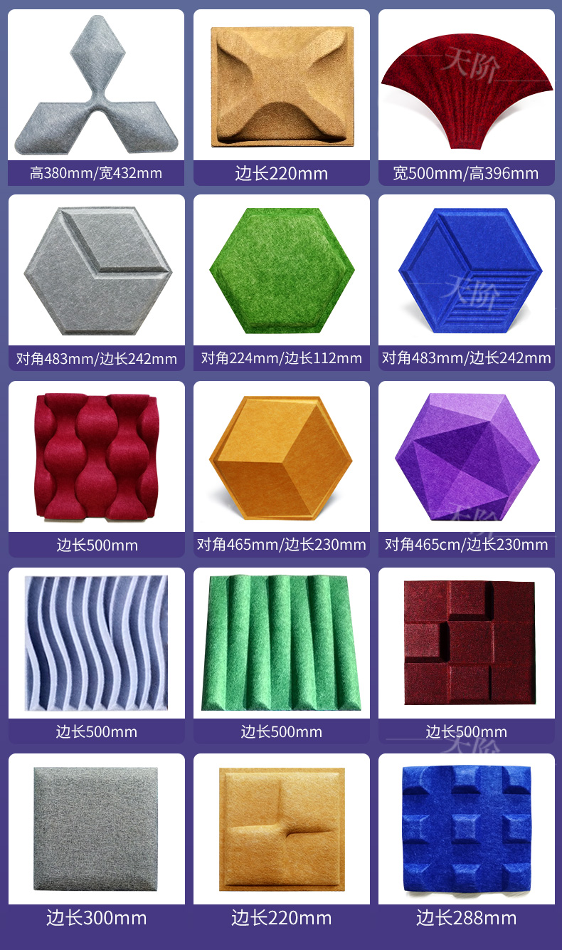 3D聚酯纖維吸音板是今年新研發(fā)產(chǎn)品,采用的是綠色環(huán)保高新技術(shù)熱壓合成繭棉形狀的纖維板材,具有環(huán)保,防火,吸音,3D效果裝飾性更立體,易安裝等功能。