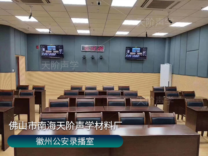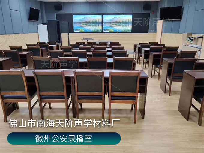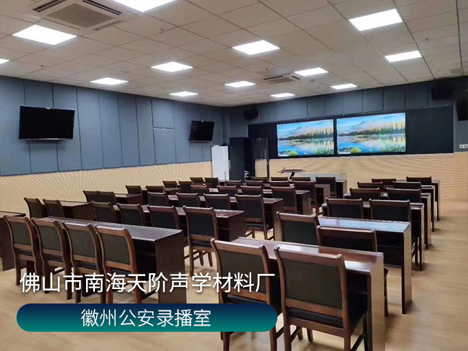 州公安錄播室 選用長條槽木吸音板與軟包吸音板搭配使用,吸音效果顯著。
