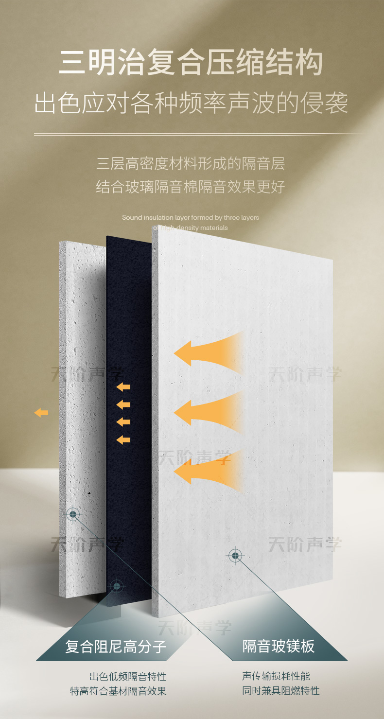佛山天階吸音板生產(chǎn)廠家 發(fā)布日期:2021-06-12阻尼隔音板采用玻鎂基材,夾加高分子阻尼膠,三文治結(jié)構(gòu)高壓復(fù)合成型,形成阻尼復(fù)合結(jié)構(gòu),改變?cè)馁|(zhì)共振頻率,倍數(shù)提升原有材質(zhì)空氣隔聲量和結(jié)構(gòu)隔聲量。