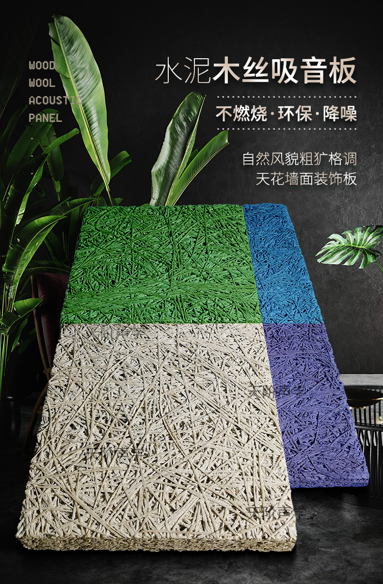 木絲吸音板的表面紋理表現出高雅質感與獨特品味,可充分演繹設計師的創意和理念。該產品結合了木材與水泥的優點:如木材般質輕,如水泥般堅固,具有吸音、抗沖擊等多種功能,可廣泛應用于體育場館、劇場、影院、會議室、教堂、工廠、學校、圖書館、游泳館等處。