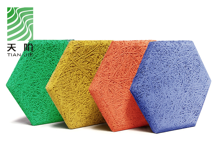 外觀獨特、吸音良好--獨有的表面絲狀紋理,給人一種原始粗獷的感覺,滿足了現代人回歸自然的理念。表面可做飾面噴色和噴繪處理.